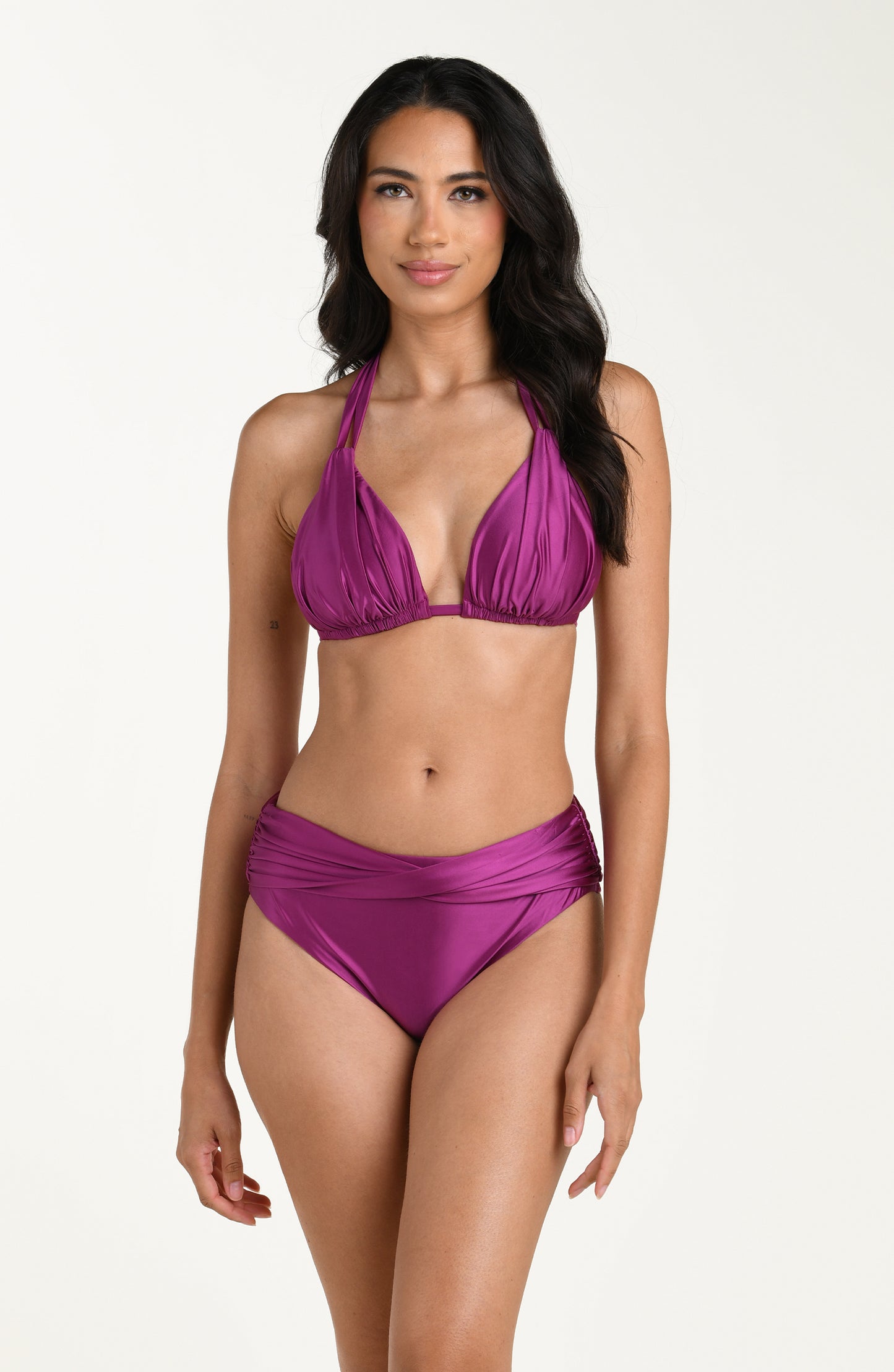 Earth Goddess Mid-Waist Twist Front Bottom - Berry