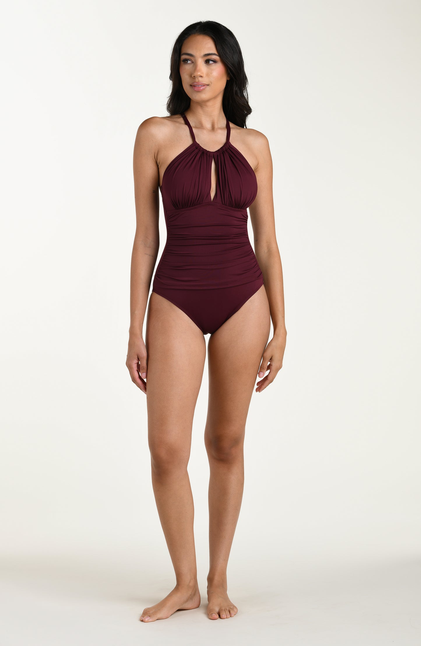 Island Goddess High Neck Keyhole One Piece - Dark Cherry