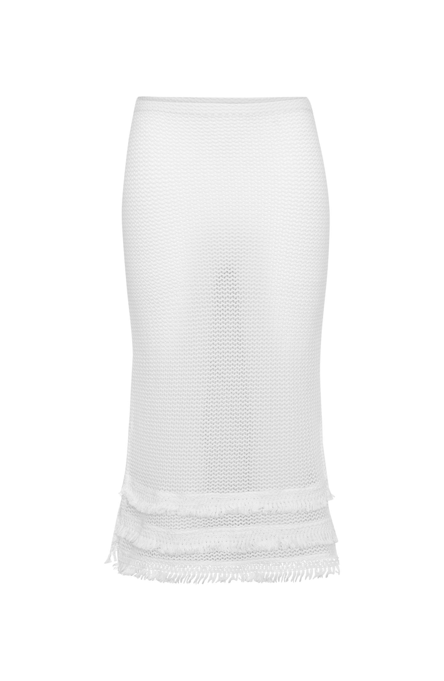 This Midi Skirt from our Flora Flair Collection print features a sleek, fitted silhouette with a straight cut and fringe-trimmed sheer panels for a chic, breezy look.