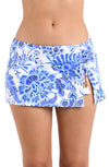 Dive into a captivating swim collection adorned with a stunning blue and white multicolored floral pattern, blending the beauty of ocean waves and blooming flowers. The blend of these cool tones on this skirted bottom evokes a sense of tranquility and elegance, making it an ideal choice for those seeking a sophisticated and stylish beachwear option.