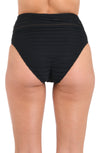 This solid textured bottom features clean and crisp textured lines that add a touch of sophistication to your beachside look. The iconic high-waist design on these bottoms has a glamourous retro-inspired vibe that lets you show off your curves with confidence. Built-in tummy control instantly trims and tones, while moderate coverage in back ensures these bottoms stay firmly in place.