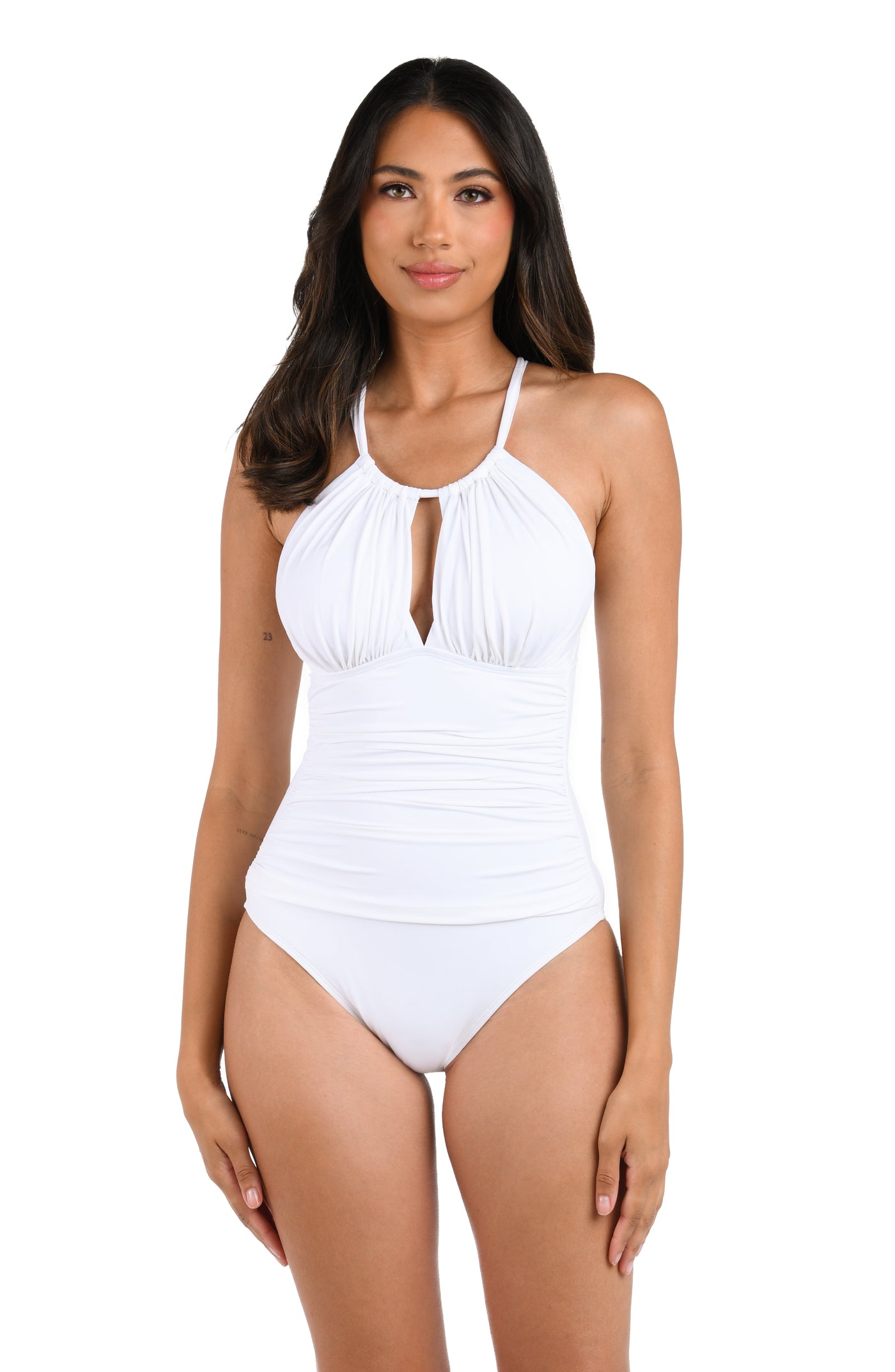 Island Goddess One Shoulder Keyhole Tankini Top - White
