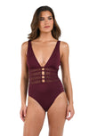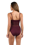 Island Goddess Over the Shoulder Mesh One Piece - Dark Cherry
