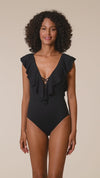 Island Goddess Ruffle Plunge One Piece - Black - FINAL SALE