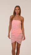 This mesh cover-up skirt features a shirred design with a fitted silhouette, offering a flattering and elegant look. The lightweight, sheer fabric ensures breathability and comfort, making it perfect for layering over swimwear.