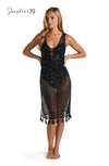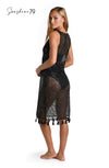 A black crochet cover-up dress epitomizes beachside sophistication, with its intricate pattern weaving a delicate and alluring layer over your swimwear. This dress by Sunshine 79 effortlessly combines a sense of bohemian charm with a touch of glamour, making it the perfect companion for your seaside escapes.