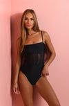 This one-piece swimsuit offers a sleek and supportive fit, with adjustable straps ensuring a personalized and secure feel. The semi-sheer mesh detailing adds breathability and style, while the soft fabric provides lasting comfort for beach or poolside wear.