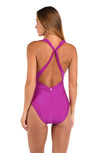 Regular price $90.75This stunning one-piece boasts a captivating bright violet hue that exudes energy and vibrancy, making it impossible to go unnoticed. The deep plunging neckline fastens at the center with a sash band and twist back. A high-cut front lengthens the legs and moderate coverage in back keeps the look sophisticated.