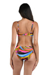 Regular price $63.75The bold, abstract design features swirling, organic shapes in a vivid palette of pinks, blues, greens, and oranges, creating a dynamic wave-like effect. A sweetheart neckline with a wrap-style front accentuates the bustline while still providing just-right coverage. Adjustable over-the-shoulder straps and molded cups give you the perfect amount of lift.